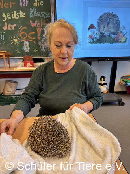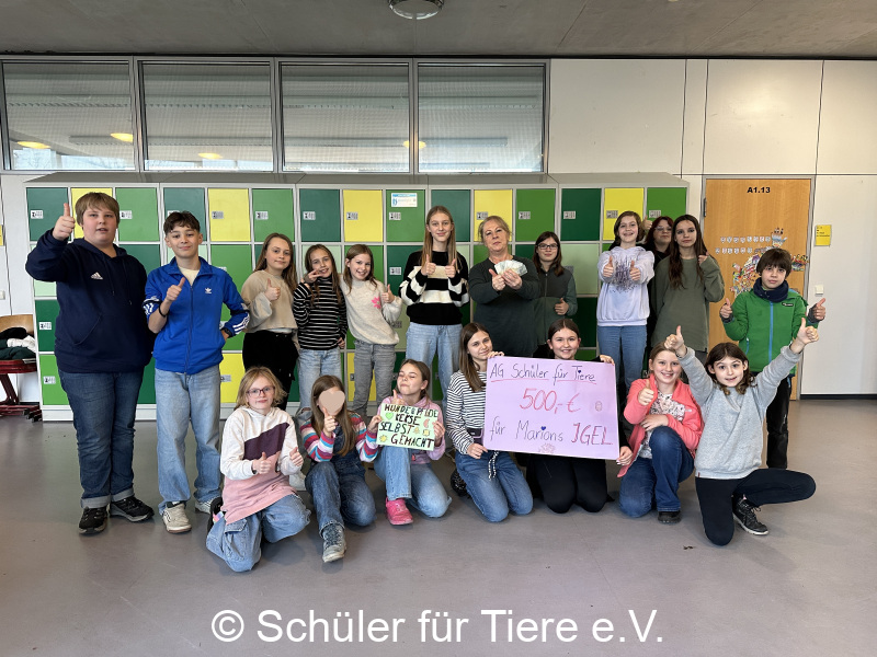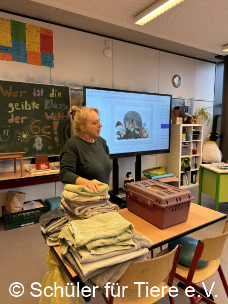Die AG „Schüler für Tiere“ übergab unserer Igelpäpplerin Marion eine Spende in Höhe von 500 Euro sowie zahlreiche Handtücher.